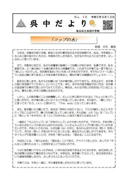 配布文書一覧の呉中だよりをクリックしてカラー版を閲覧することもできます。