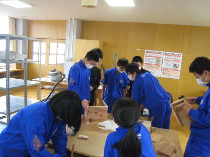 1年の技術家庭では、多くの生徒がファイルボックス製作を終えていました。そして、ファイルボックスが完成した人は、工夫したところや上手にできたところをレポートにまとめていました。