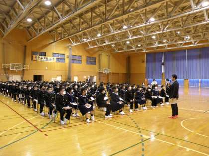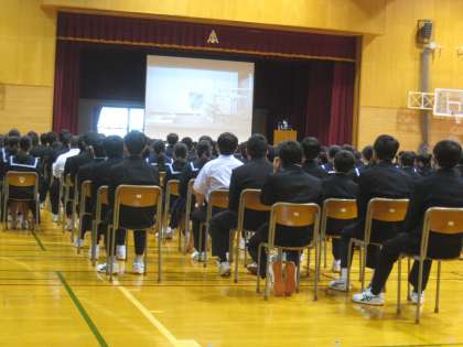 新入生にとっては、入学式後、今日が初日です。1年生学年集会がありました。
