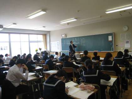 2年の理科では、生徒たちがテストに出題された問題の解説をしっかりと聞いていました。