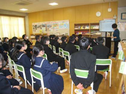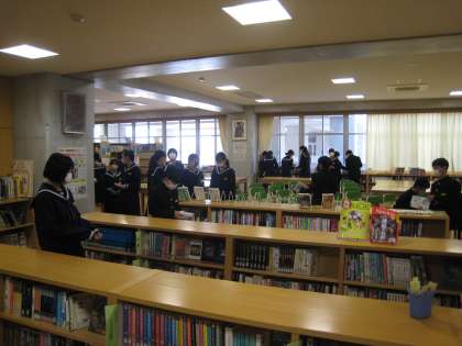 1年生が、図書室で利用の仕方のガイダンスを受けていました。