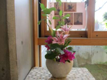 地域の有志の方が、定期的に季節のお花を生徒玄関に生けてくださいます。先日も、足を運んでくださり、素敵な花を生けてくださいました。いつもありがとうございます。
