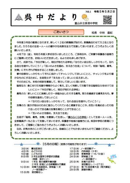 配布文書一覧の呉中だよりをクリックしてカラー版を閲覧することもできます。