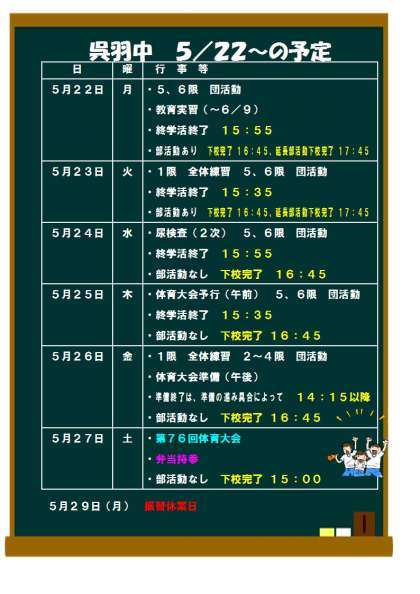 5/22(月)〜 の予定