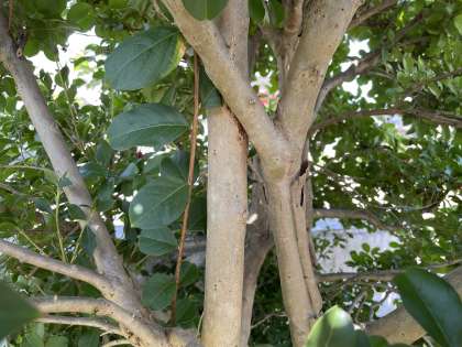 校舎の南側で、色鮮やかな「百日紅」の花が、空に広がるように咲いています。「ヒャクジツコウ」と読み、開花期間が長いことから付けられた名前だそうです。ただし、幹の表面の様子から付けられた「サルスベリ」と読む名前のほうが親しみを感じるかもしれません。