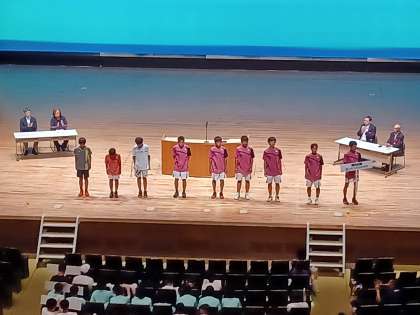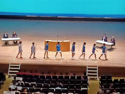 試合は明日からですが、今日は高松レクザムホールでの開会式に臨み、入場行進をしました。