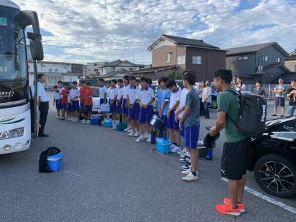 サッカー部が明日から香川県で開催される全国大会に向けて出発しました。北信越の代表、そして呉羽中プライドを胸に、勝利を掴み取ってください!健闘を祈っています!