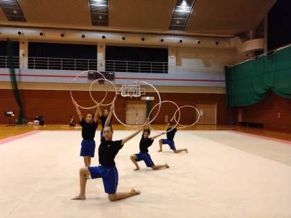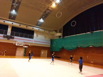 新人大会から団体種目がフープにかわり、新しい演技の練習を頑張っています。
