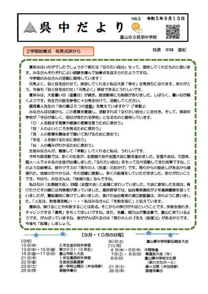 配布文書一覧の呉中だよりをクリックしてカラー版を閲覧することもできます。