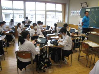 2年の技術家庭では、クロムブックを活用して、「50年後の富山のための技術を提案しよう」という課題に取り組んでいました。