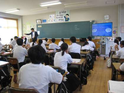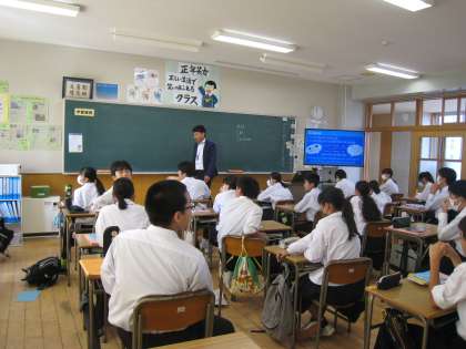 2年の英語では、「have to 〜」を含んだ英文を使って、ALTの先生と会話の授業に取り組んでいました。