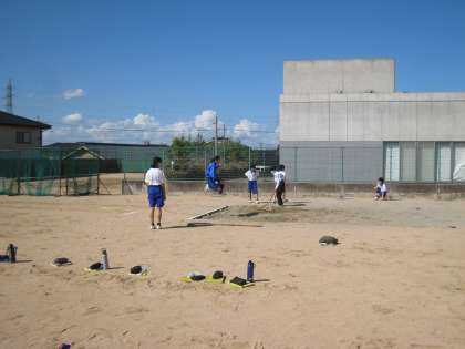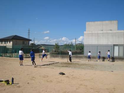 1年の保健体育では、走り幅跳びの練習に取り組んでいました。