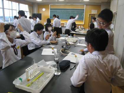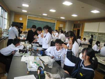 1年の理科では、硝酸カリウムの結晶を取り出す実験を行っていました。