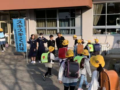 本日、小中学校合同であいさつ運動が行われました。みんな元気でさわやかなあいさつを交わしていました。ありがとうございました!