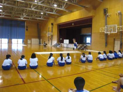 3年の保健体育では、マット運動の練習の成果を発表していました。