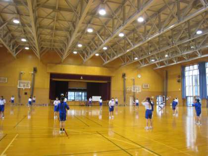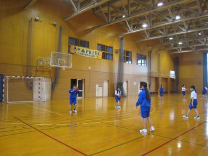2年の保健体育では、ペアでバスケットボールのパス練習を行っていました。