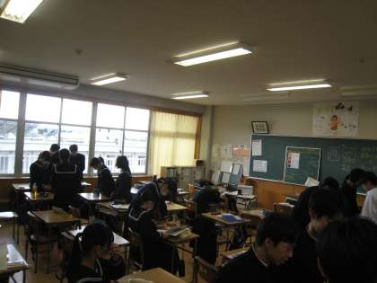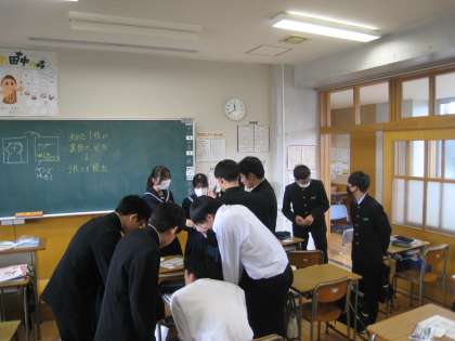 3年の学活では、卒業アルバムに載せる写真の選定を行っていました。