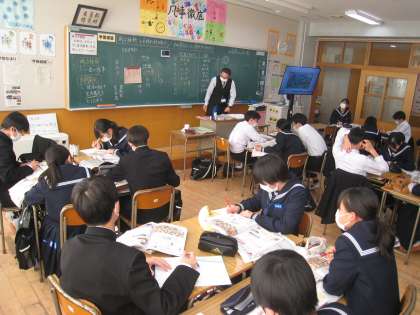 2年の社会(歴史)では、文明開化の風刺画から、外国の文化と日本の文化を見つけて書き出していました。