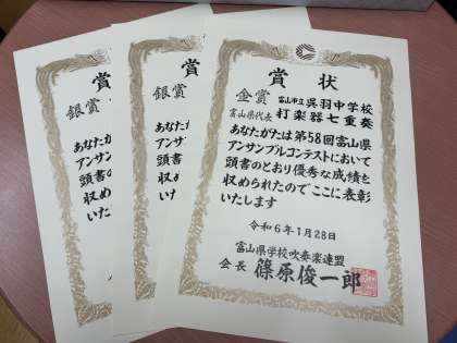 1月28日(日)吹奏楽部 第58回富山県アンサンブルコンテスト結果