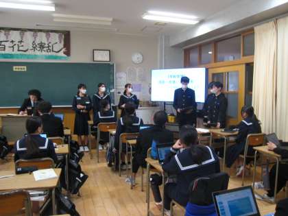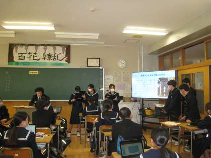 2年の総合的な学習の時間では、これまでに平和について考えたことを、班ごとに発表していました。