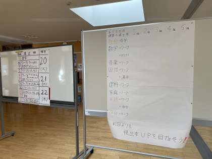 放課後早速、級長たちが各クラスの今日の提出率を計算し、廊下に掲示していました。明日学校に来たら、見てみてください。果たして、社会の自学の提出率は上がったのでしょうか?!