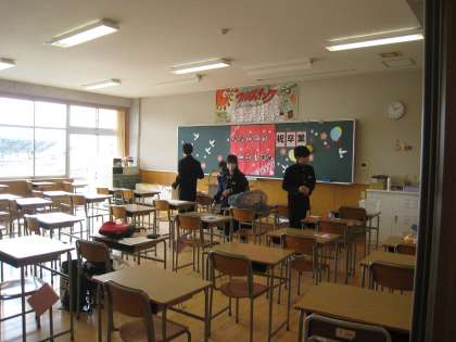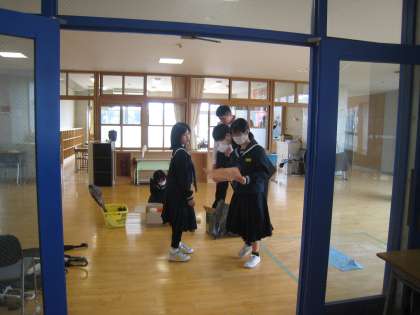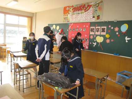 1,2年生が卒業式に向けて、飾り付けや掃除を行っていました。
