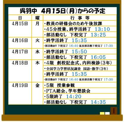 4月15日(月)からの予定