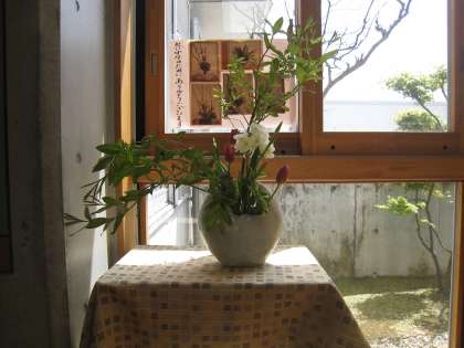 地域の有志の方が、定期的に季節のお花を生徒玄関に生けてくださいます。昨日も、足を運んでくださり、花を生けてくださいました。いつもありがとうございます。