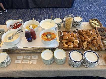 みんな元気です。 30分から朝食です。お腹ペコペコです。