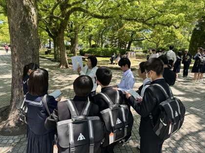 広島 平和学習 ガイドさんの案内のもと、碑めぐりを行っています。