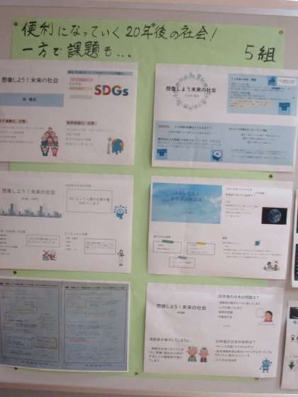 総合的な学習の時間で発表したスライドが掲示してあります。