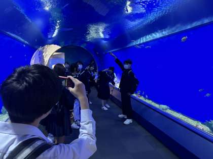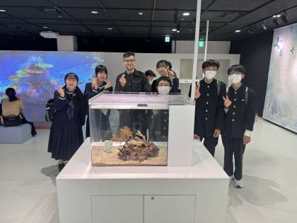 承諾をいただいての外国の方と一緒に珊瑚礁前で記念撮影!