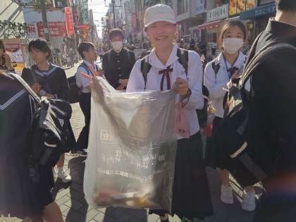 道頓堀でも京都でも大きなゴミ袋をもって奉仕活動してた生徒がいました