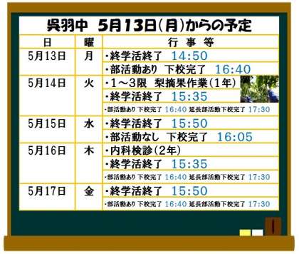 5月13日(月)からの予定