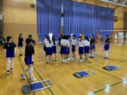 3年生は昨日までの修学旅行で疲れているはずですが、そんな様子も見せず1年生に練習の仕方を教えていました。