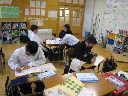 1年は地理、2・3年は歴史を行いました。先生の話を聞き、その後に各自がワークに取り組みました。