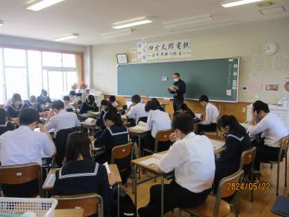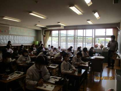 上から、 3年2組:理科 3年3組:道徳 3年5組:美術