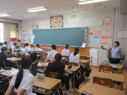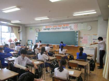 先週に引き続き、今日も朝学活前にFriday Careが実施されました。今日は肩から腕の後ろのストレッチを行いました。