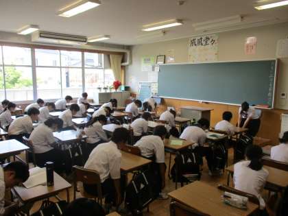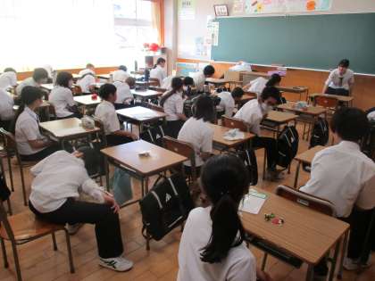 本来なら、金曜日の朝に保健体育委員会が「フライデーケア」というストレッチを行っていますが、明日は富山市中学校総合選手権大会が開催されるので、今日行いました。