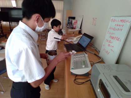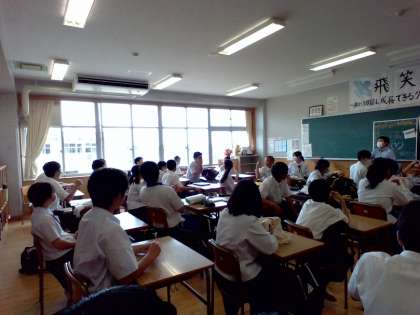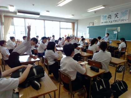 2学年では毎日終学活の時間に、翌日の「クラス対抗 あいさつの輪運動」の担当者を選ぶ抽選を行っています。