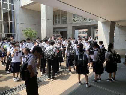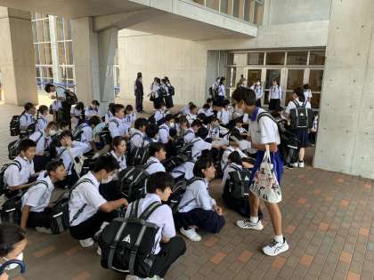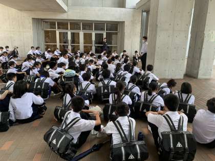 生徒会主催で、PTAの保護者の方と一緒に地域ボランティア清掃をします。約100人集まりました。