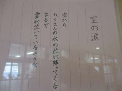 国語の授業で生徒が書いた詩が掲示されています。 紹介します。