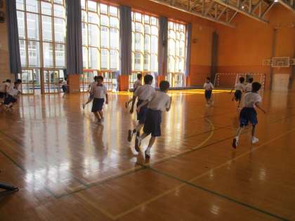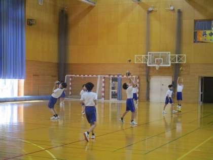 バレーボールでは、オーバーハンドパスの練習をしています。
