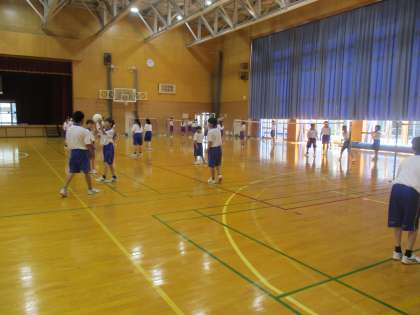小さいコートで柔らかいボールと使用しミニゲームを行いました。