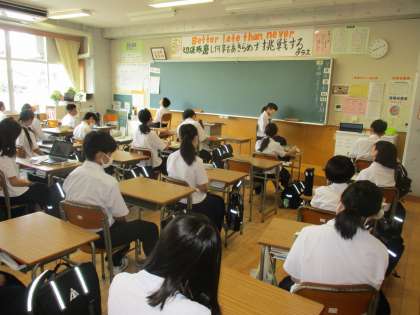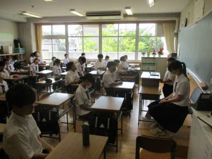 朝から蒸し暑いですが、生徒は空調の整った教室で