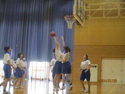 学年レクリエーションでバスケを行いました。生徒は暑さに負けず、白熱した戦いを繰り広げていました。元気いっぱいです!