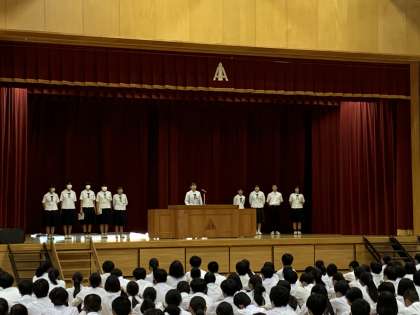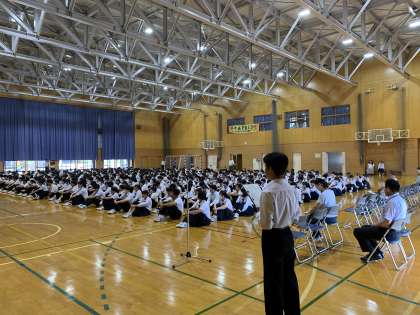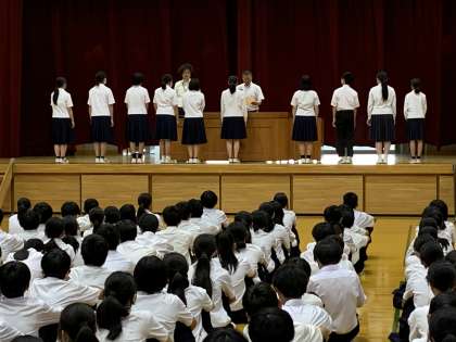 本日、6限に体育大会実行委員認証式を行いました。校長先生から委嘱を受けた後、実行委員長が体育大会に向けての熱い思いを語りました。