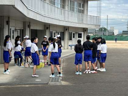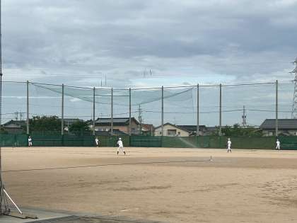 今日から夏休みです。グラウンドでは、ソフトボール部、野球部、ソフトテニス部が練習しています。