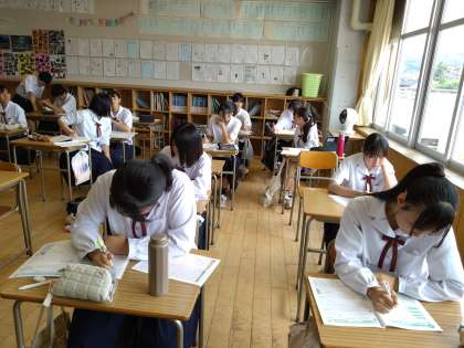 今日も約20人の生徒たちが暑い中登校し、それぞれの課題に真剣に取り組んでいました。