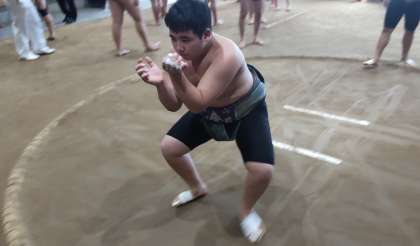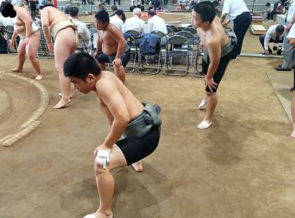 新潟県の謙信公武道館にて開催されている北信越大会相撲競技に本校から4名の相撲部員が参加しています!試合開始に向けて、入念なウォーミングアップを行っています。
